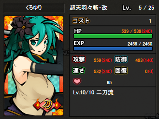 確か名前が気に入ってずっと取っておいたんだけど、なんで放置してたんだっけ……たぶん刀属性が役に立つところがなくてずっと放置されてたんだと思う。超化は失うものも大きいからしないにしても、せめて2コス止めにして使ってやればよかったのに。