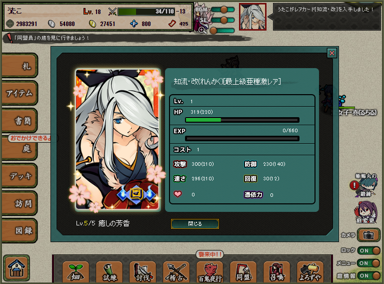 ↑この超紫の君、1コス幸運とかいうお前どう考えても平坂深層につれてきちゃだめだろ的な姫で。超おゆきは専用スキル上げた4コス3スキルだけど、正直今はもう超おゆきってそこまで強くな…げふんげふん。スキルの効果は強力だけど確率とステの低さがネックなんじゃ