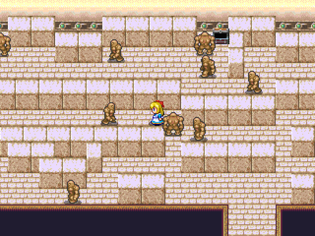 サイコがマッパなのに気がついておらず、なんだこいつ柔らかいなファルタイプか?などと思っていた。気がついた後も金がなくて装備が買えず、でなかなか進めず。サイコが回復技を覚えたので、サイコのMPが尽きるorアリスとサイコのどっちかが死ぬまでひたすらスライムを倒しては帰還の繰り返し。