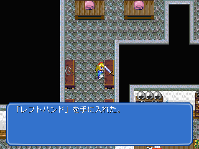再び妖精の森へ行ってロープを使い、地下牢の鍵を入手。即2本目のロープを風穴で使い、サイコの位置にいた仲間を見つける。そこにいたのはナキリ。うーん残念。アリスの攻撃力が150を超えたので倉庫の扉をぶち破ったけど、そこにもクムクムはいなかった。